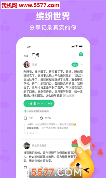 4、支持发布语音、图片、视频以及文字,共造缤纷世界;