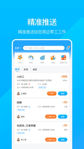 2、可以根据用户的需求快速的为你精准的定位适合你的岗位,找兼职更加的轻松。