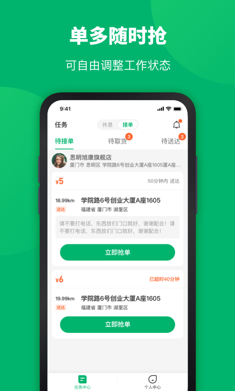 3、使用这款软件接单赚钱,可以更自由的安排工作时间,助力骑手更轻松的接单赚钱。