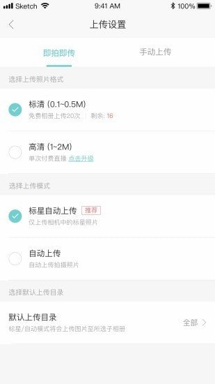 手机安装APP,通过OTG数据线连接相机,支持即拍即传、标星上传、手动上传、视频上传等多种方式。