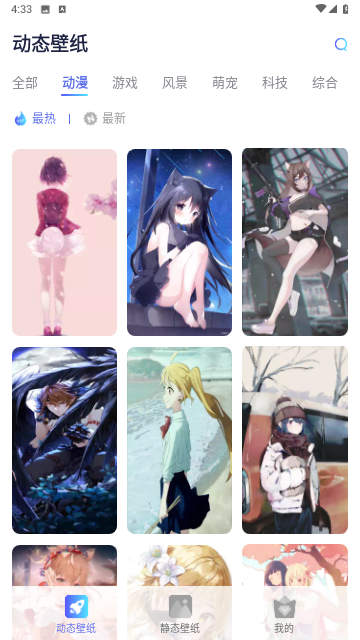 3、・海量超高清美图壁纸,二次元动漫、热门游戏、高清风景、可爱萌宠、科技十足的赛博朋克等风格,让你随心所欲更换壁纸