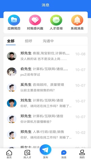 3、*所有的企业都可以在平台当中在线搜索职位,或者是个人简历。