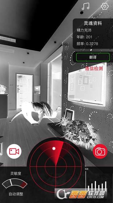 3、只要你打开软件,放置在空中,画面上就会出现鬼魂搜索雷达,一旦附近有鬼魂靠近,它就会发出警告和影像。